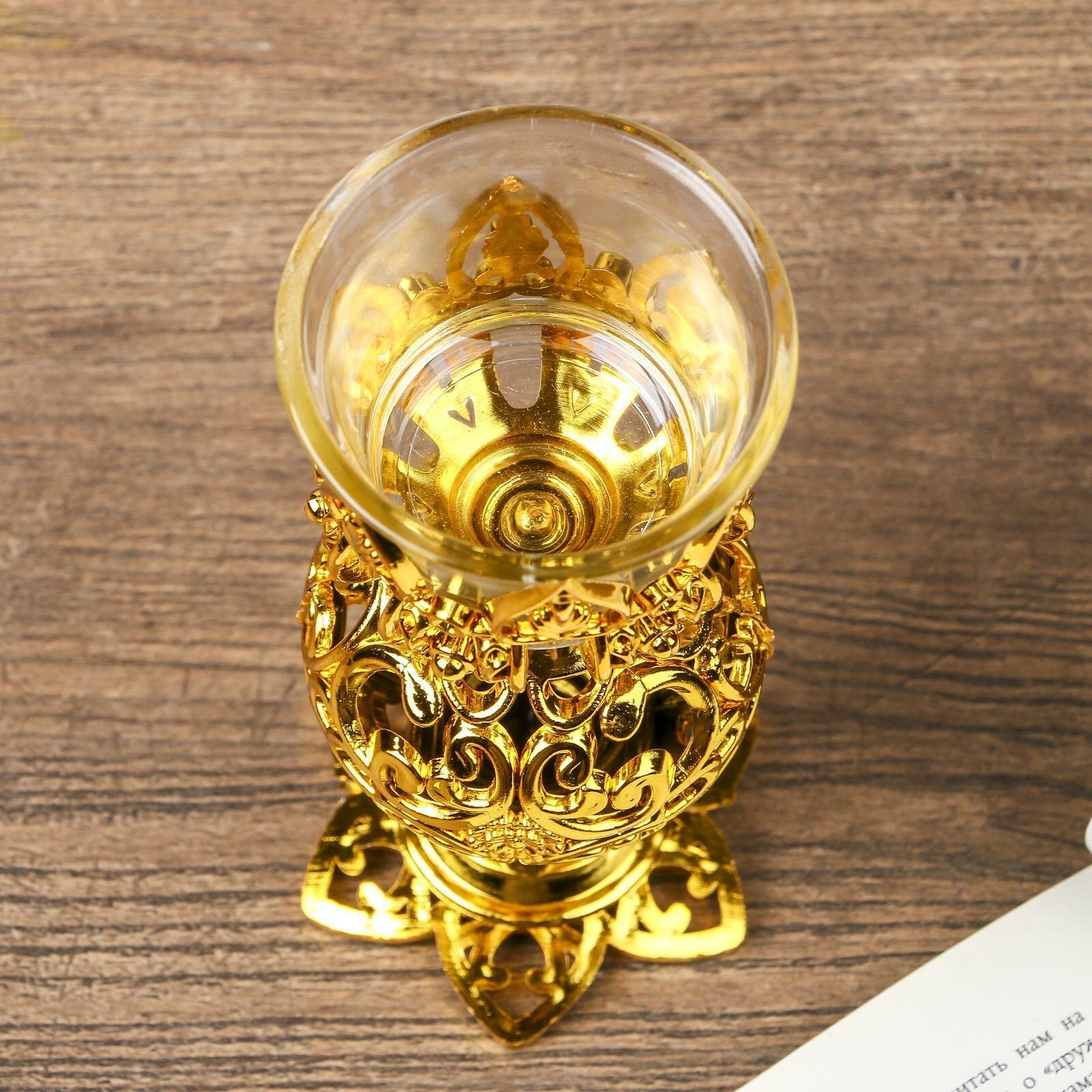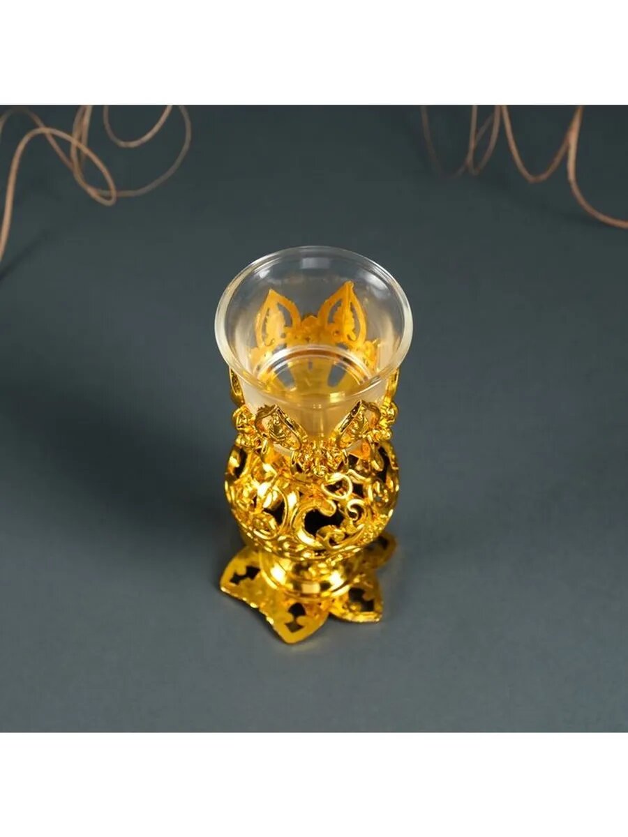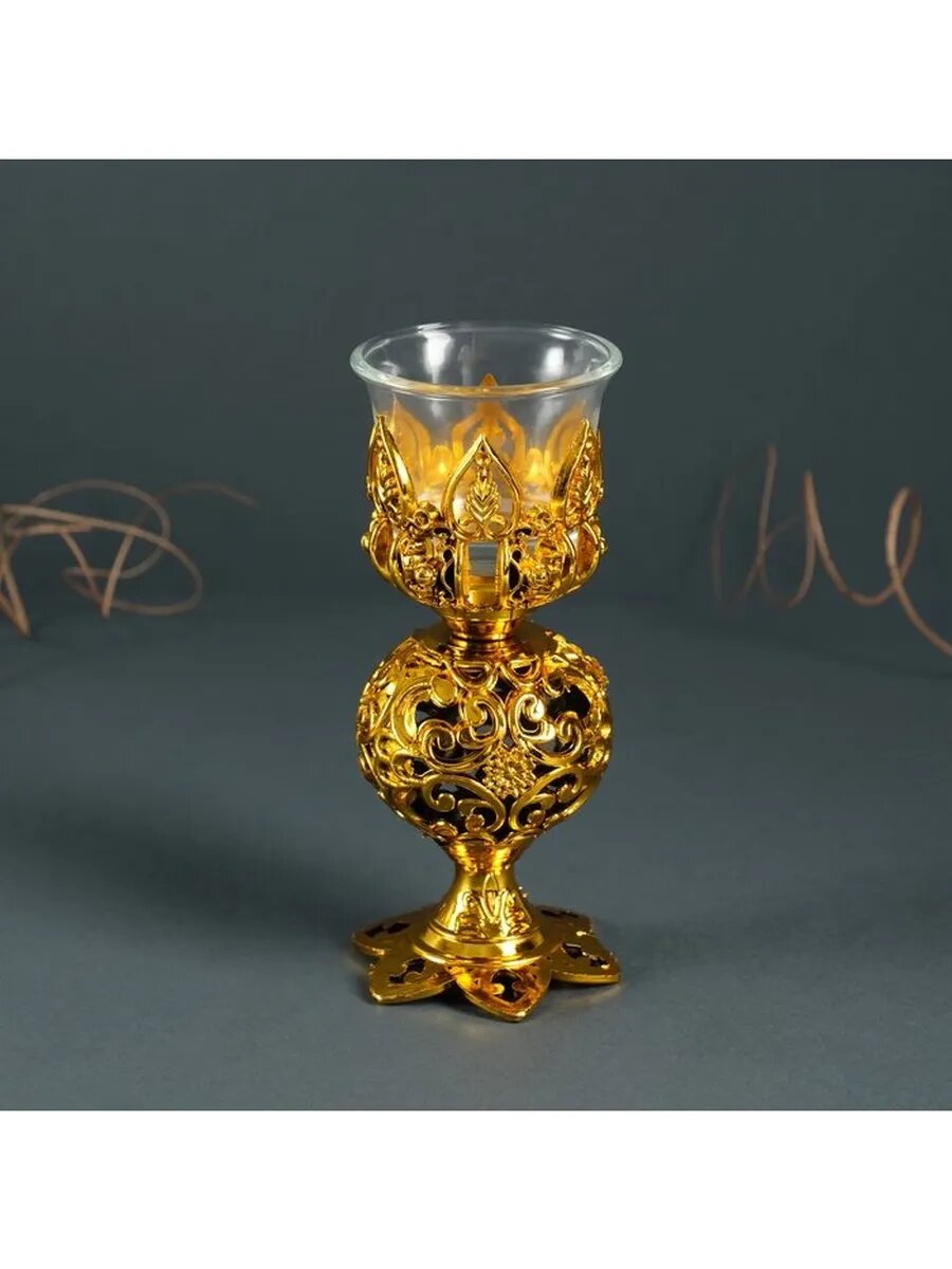 Подсвечник пластик, стекло на 1 свечу "Ажурный шар" бокал на ножке золото 15х6х6 см интересное: