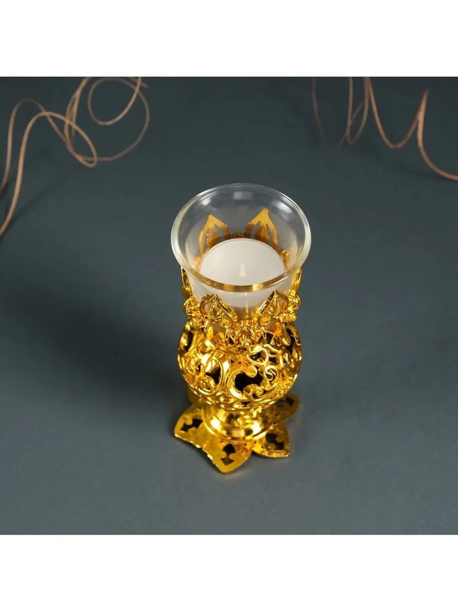 Купить Подсвечник пластик, стекло на 1 свечу "Ажурный шар" бокал на ножке золото 15х6х6 см