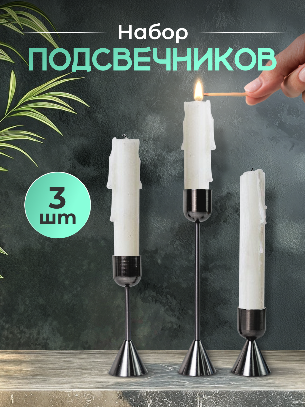 Подсвечники черные для столовых свечей набор 3 шт. интересное: