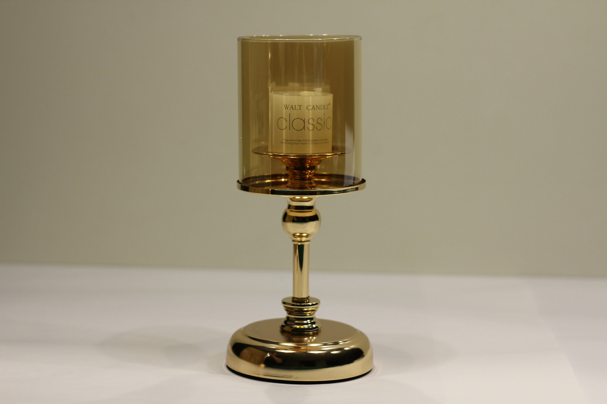 Подсвечник золотой высокий со свечой