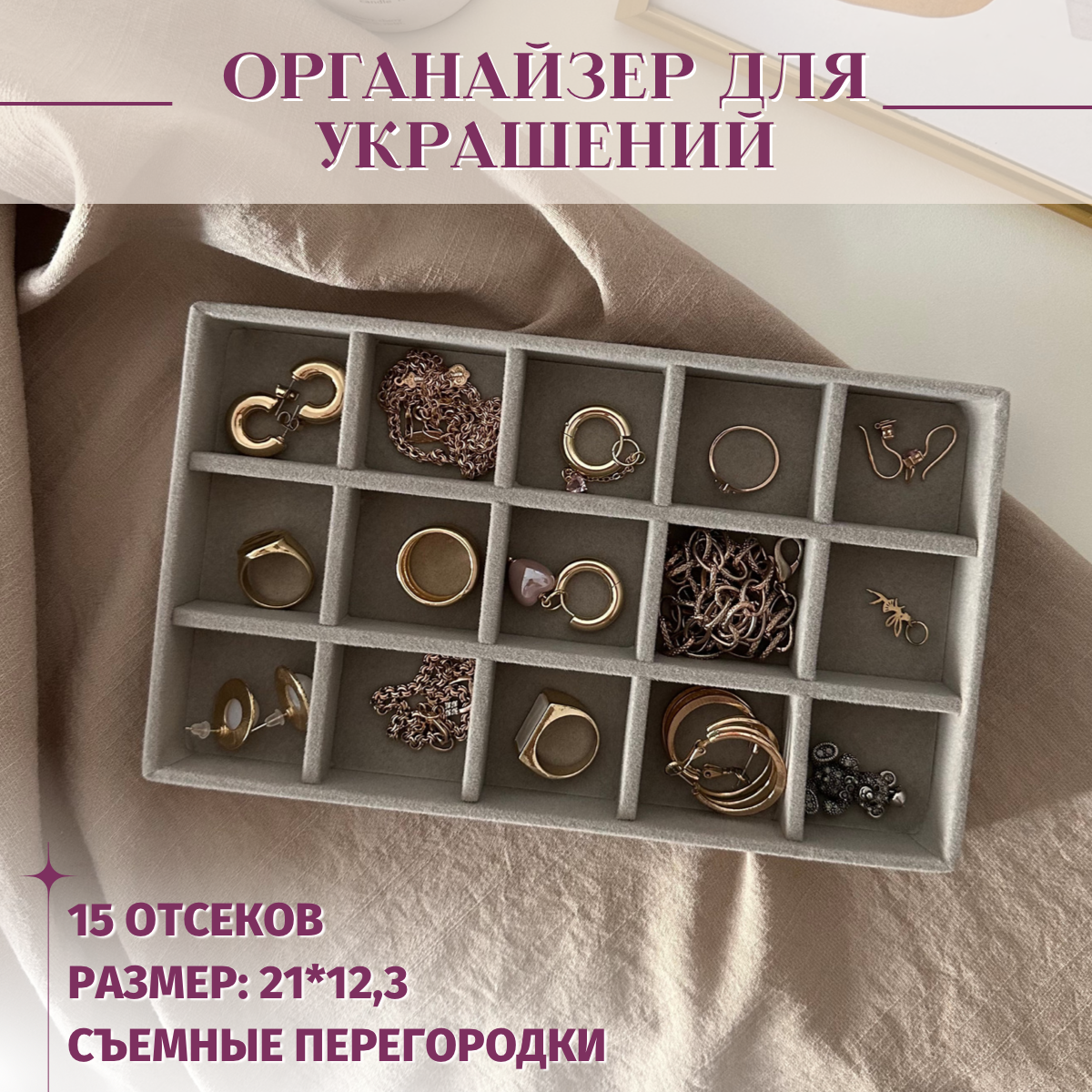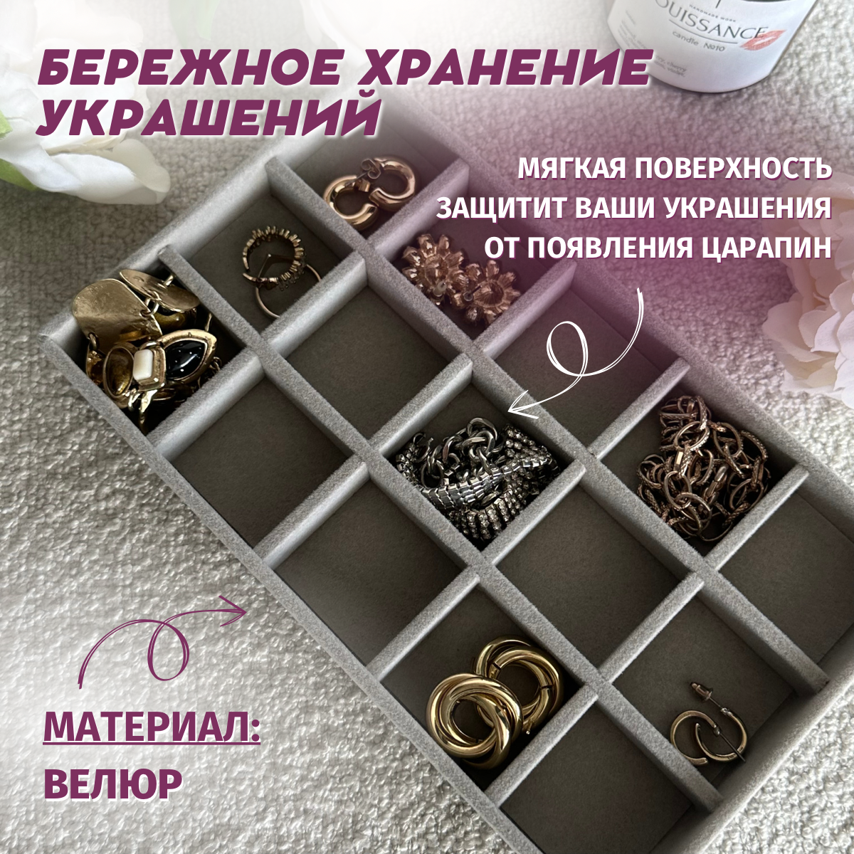 Органайзер для хранения украшений из искусственного вельвета, 15 разных отсеков, mignonette store интересное: