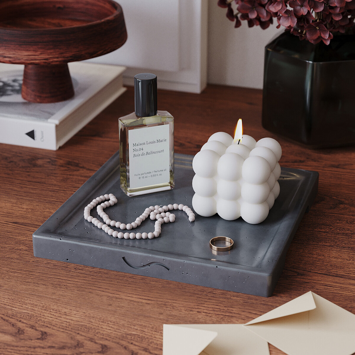 СохранитьДекоративный поднос, подставка для украшений и свечей, органайзер для мелочей и косметики Dorian Square S, 20x20 см, бетон, графитовый глянцевый интересное:
