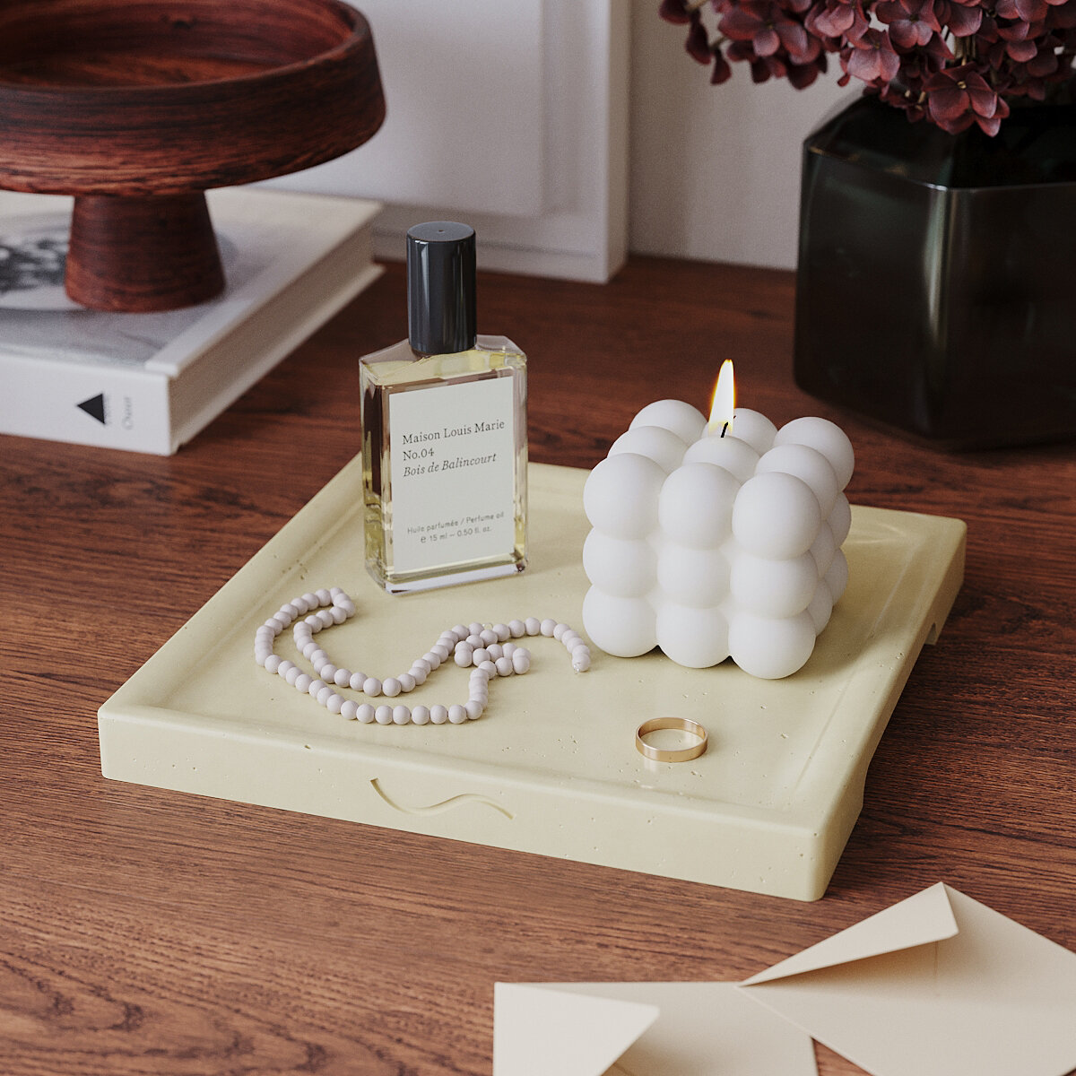 Купить Декоративный поднос, подставка для украшений и свечей, органайзер для мелочей и косметики Dorian Square S, 20x20 см, бетон, кремовый глянцевый