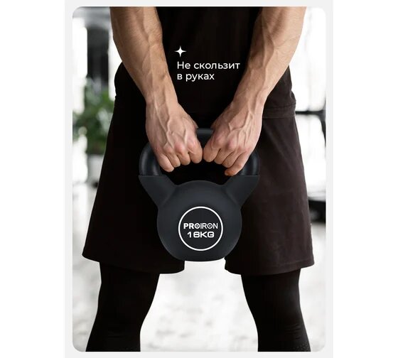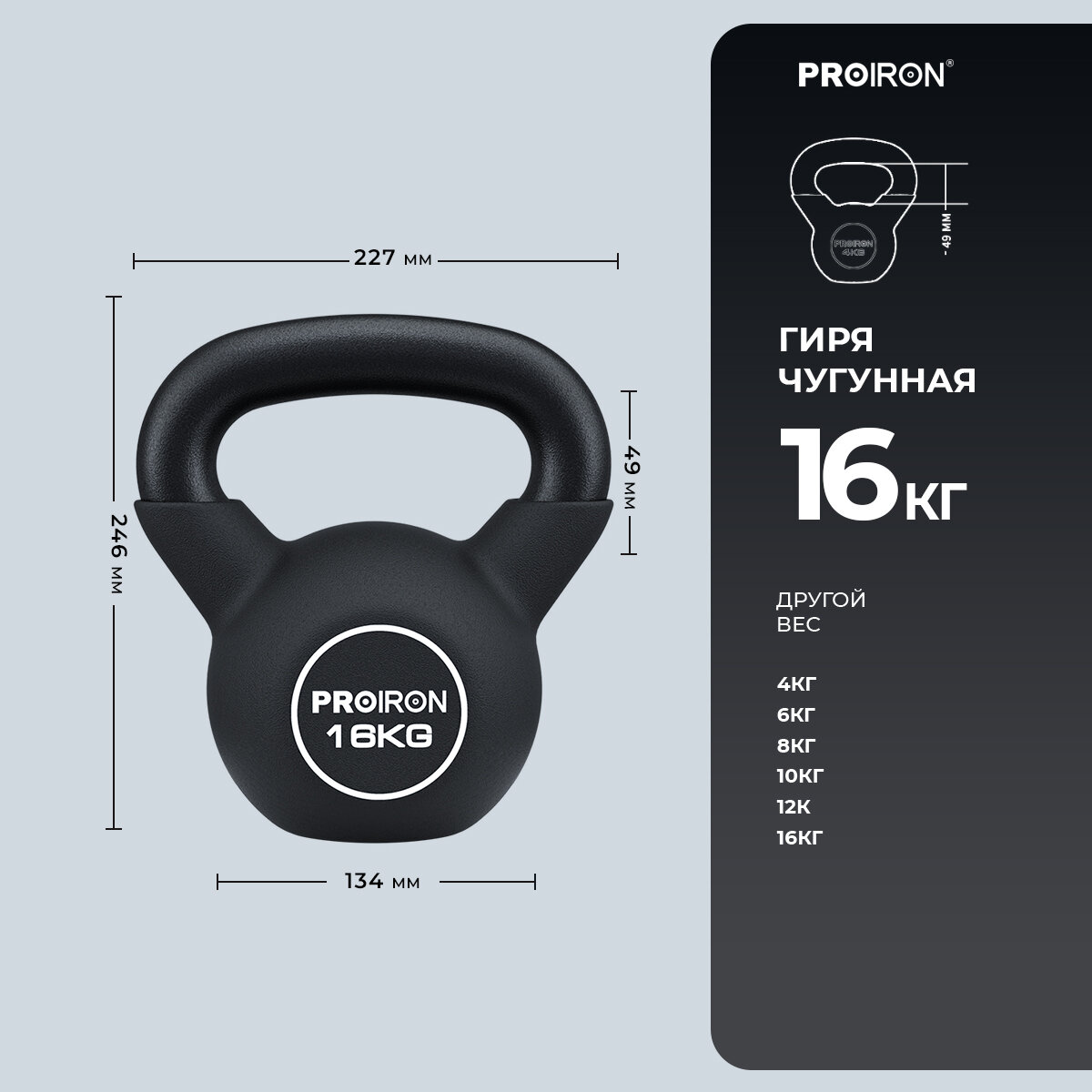 СохранитьГиря 16 кг, чугунная, неопреновая, PROIRON, для фитнеса, черная интересное: