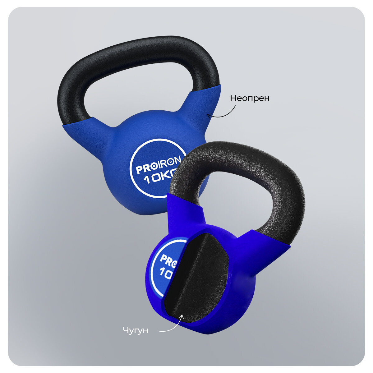 СохранитьГиря 10 кг, чугунная, неопреновая, PROIRON, для фитнеса, синяя интересное: