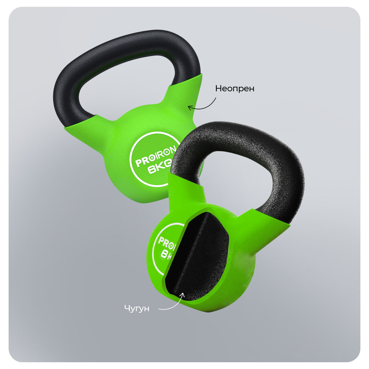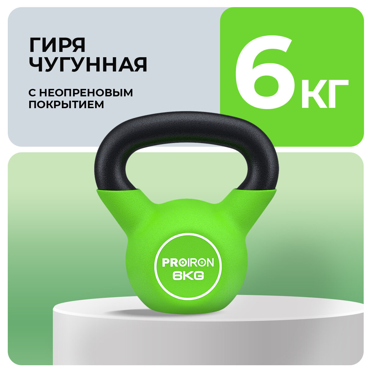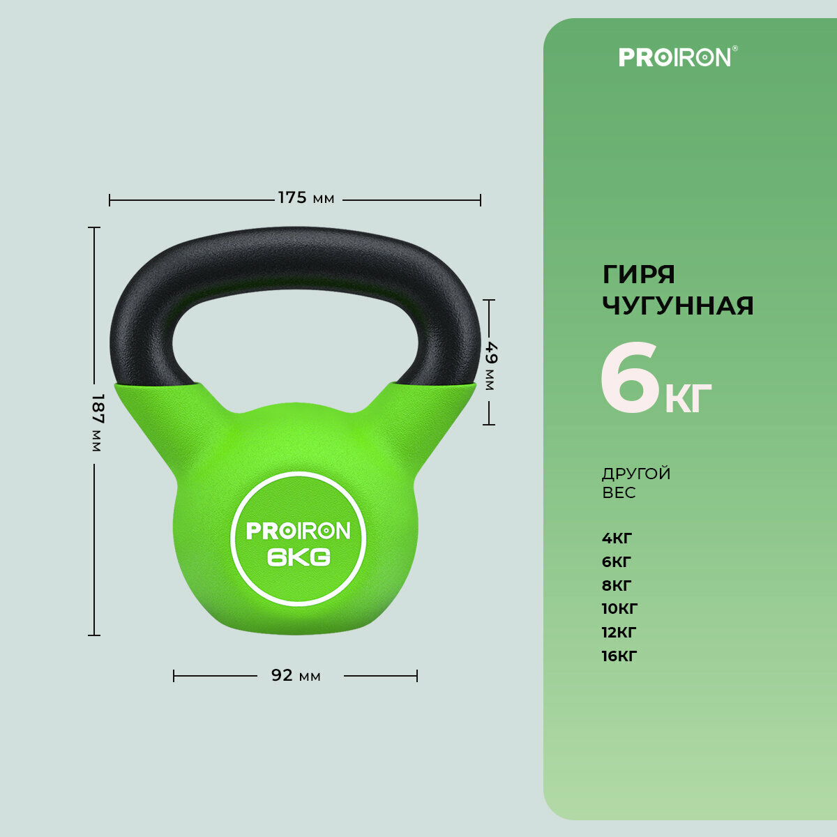 Купить Гиря 6 кг, чугунная, неопреновая, для фитнеса, PROIRON, зеленая
