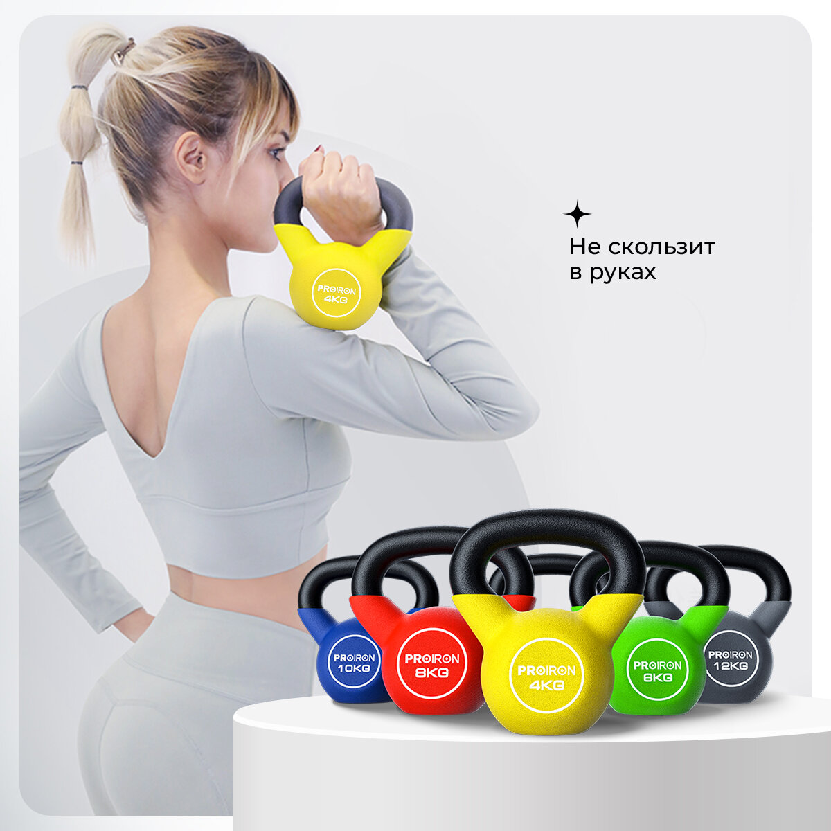 СохранитьГиря 4 кг, чугунная, неопреновая, для фитнеса, PROIRON, желтая интересное: