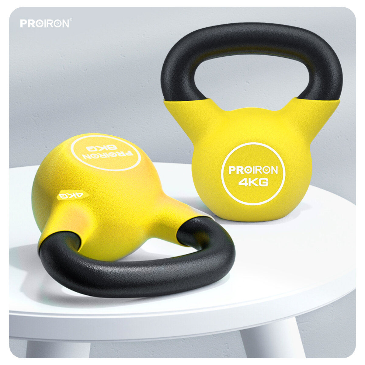 Купить Гиря 4 кг, чугунная, неопреновая, для фитнеса, PROIRON, желтая
