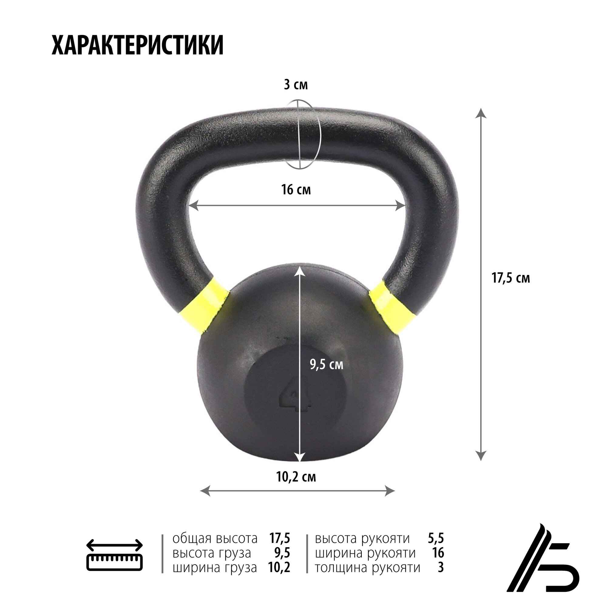 Купить Обрезиненная гиря Александр Большунов, черная, 4кг