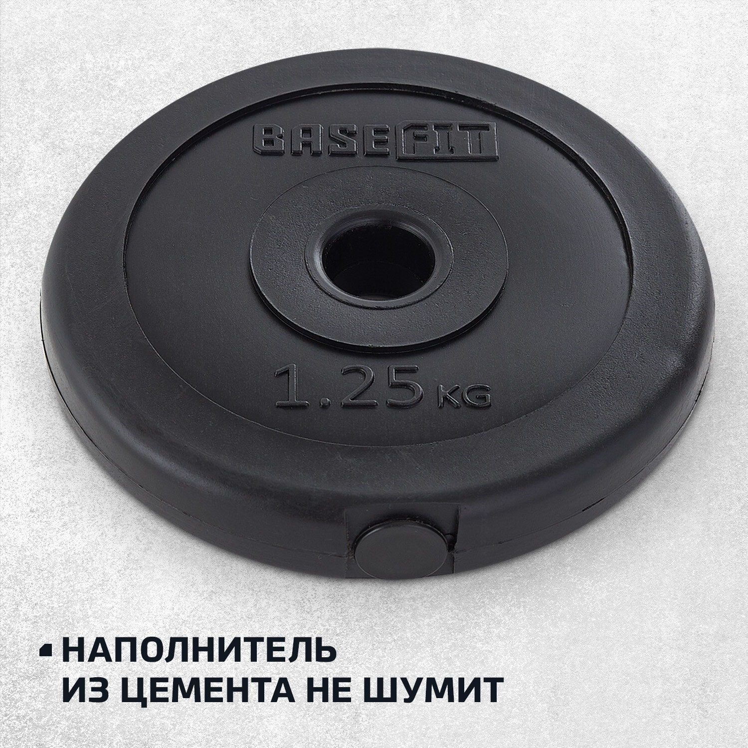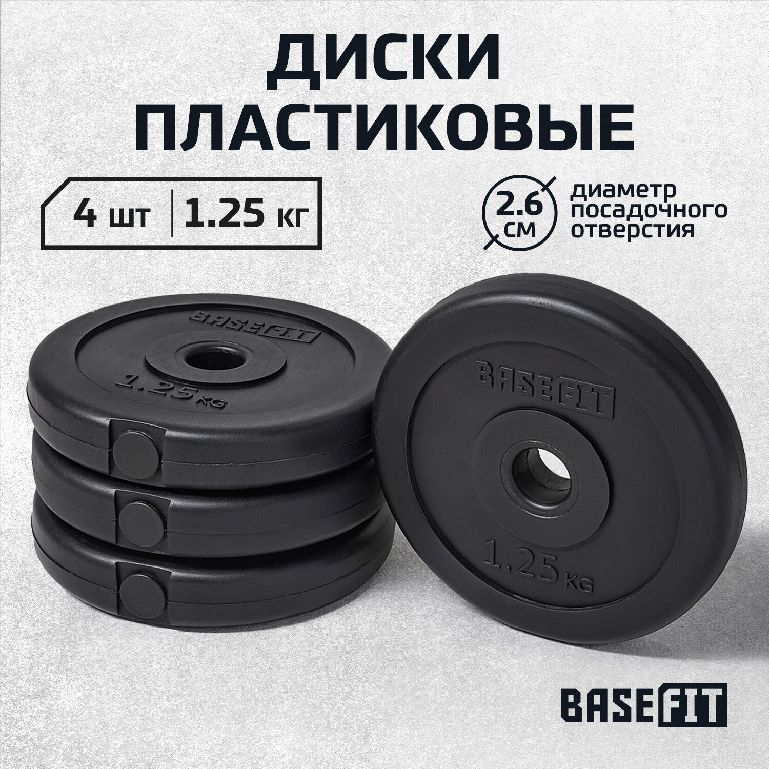 Купить Диск пластиковый BASEFIT BB-203 1,25 кг, d=26 мм, черный, 4 шт.