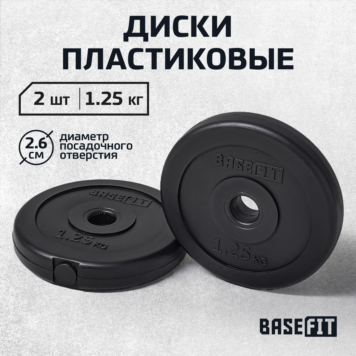 Купить Диск пластиковый BASEFIT BB-203 1,25 кг, d=26 мм, черный, 2 шт