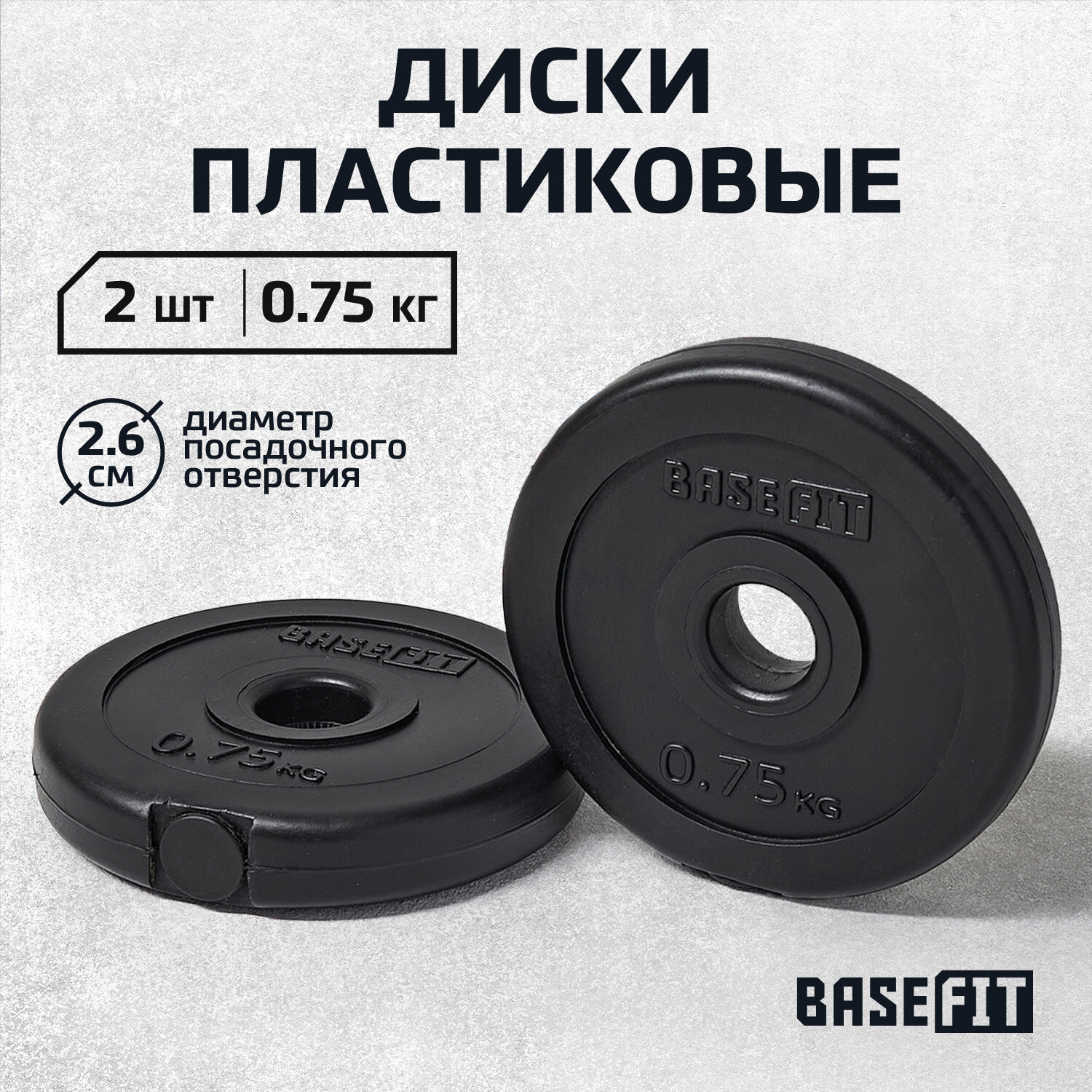 Купить Диск пластиковый BASEFIT BB-203 0,75 кг, d=26 мм, черный, 2 шт