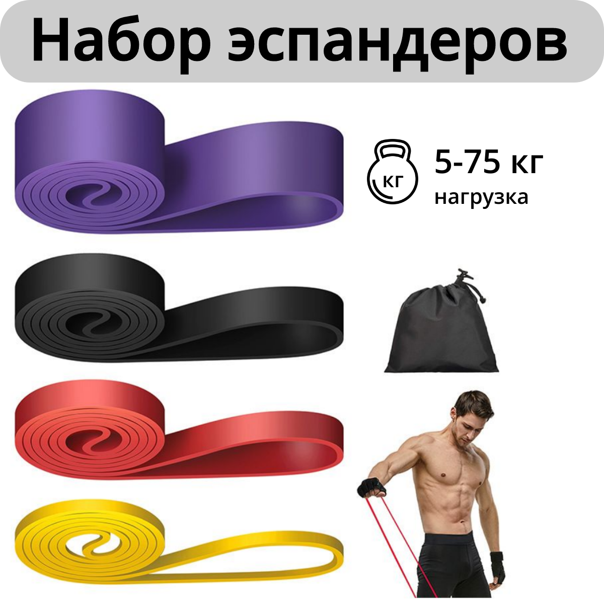 Набор резинок для фитнеса MaXXvik, 4 штуки/набор жгутов для спорта/ленточные резинки для подтягиваний/ фитнес резинка/экспандер /нагрузка 5-65 кг/сумка в подарок интересное: