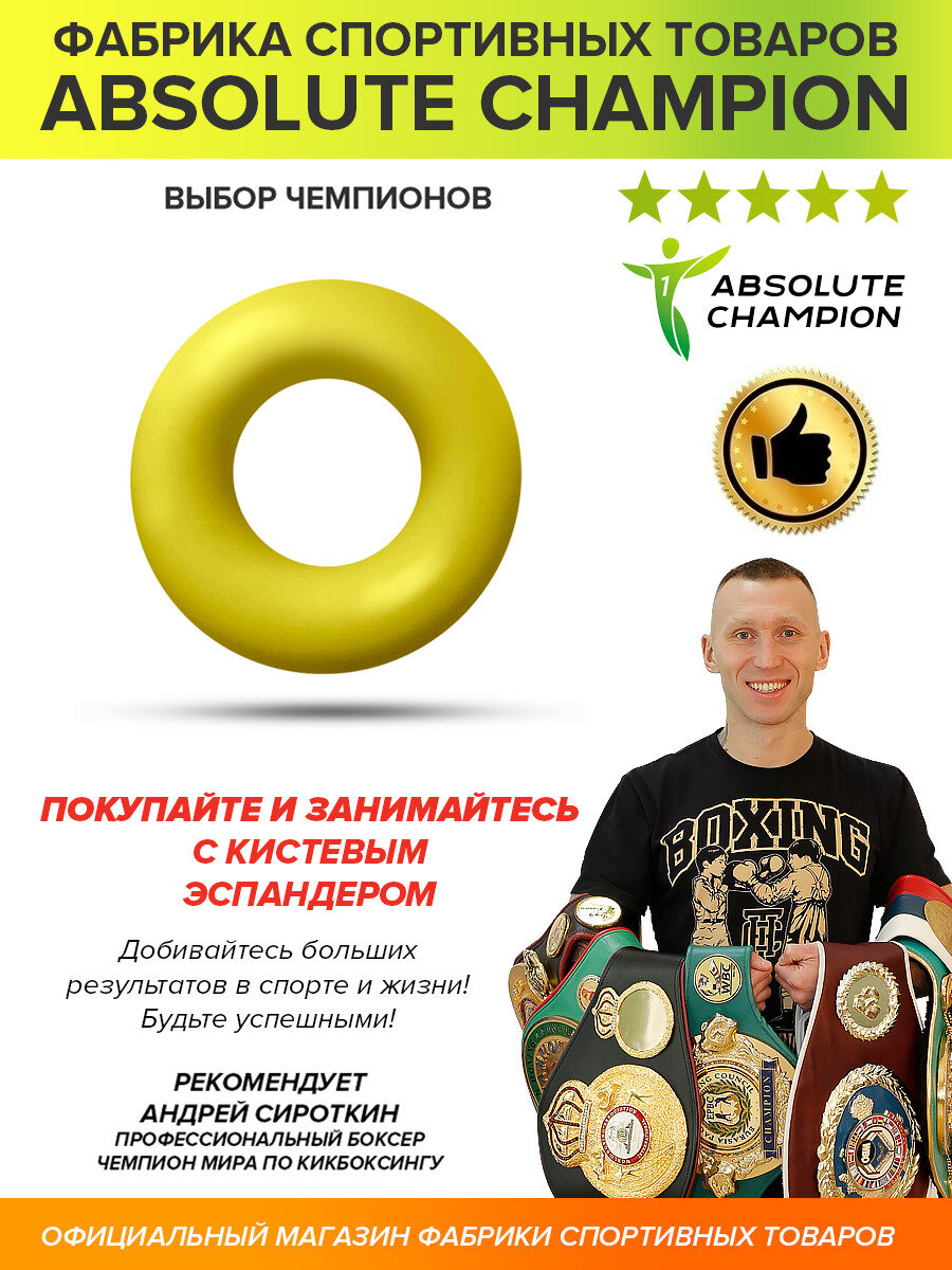 Ниже Вы можете прочитать отзывы на Эспандер кистевой Absolute Champion матовый, цвет желтый, усилие 20 кг (0), ознакомится с подробными характеристиками, посмотреть интересные обзоры и фотографии на Эспандер кистевой Absolute Champion матовый, цвет желтый, усилие 20 кг (0).