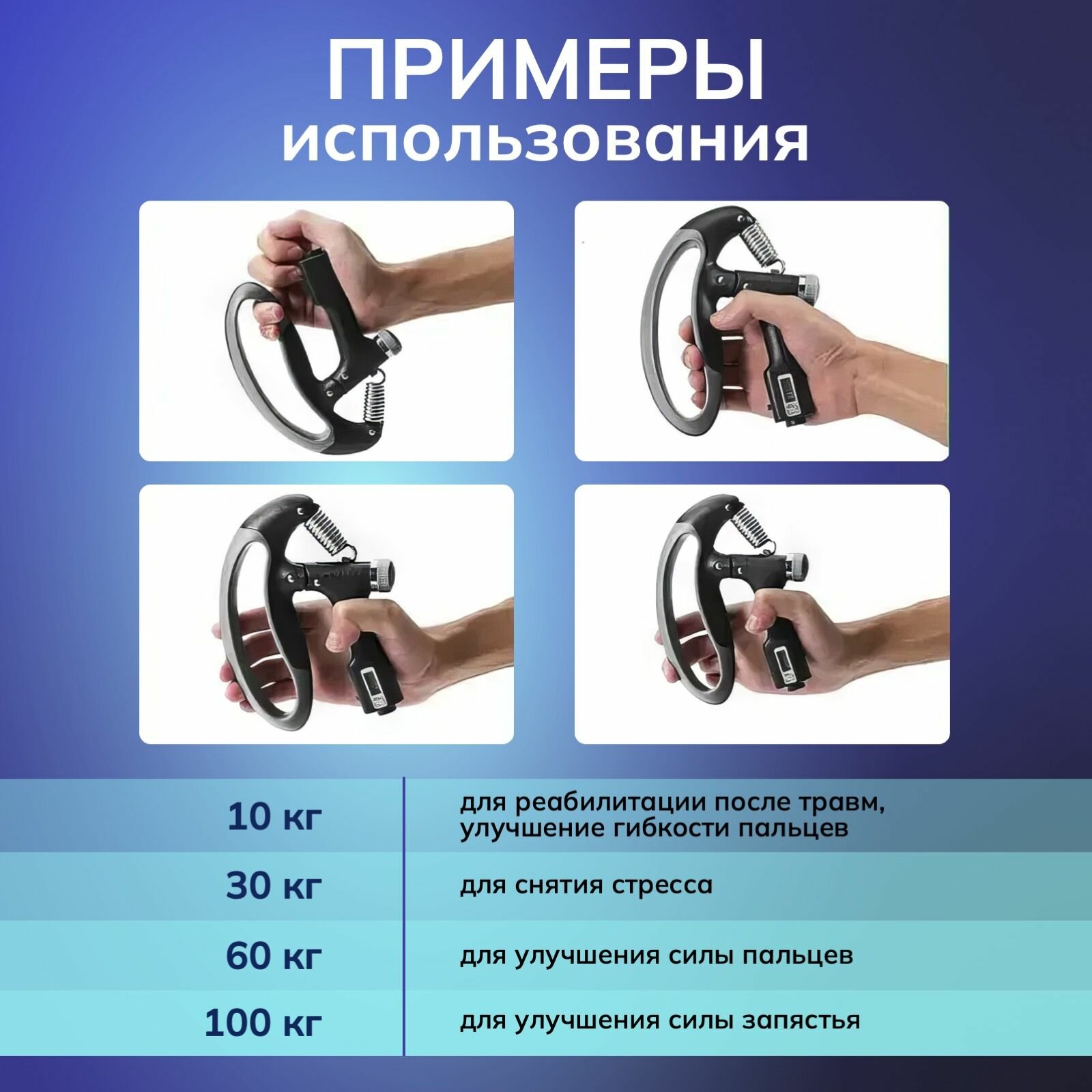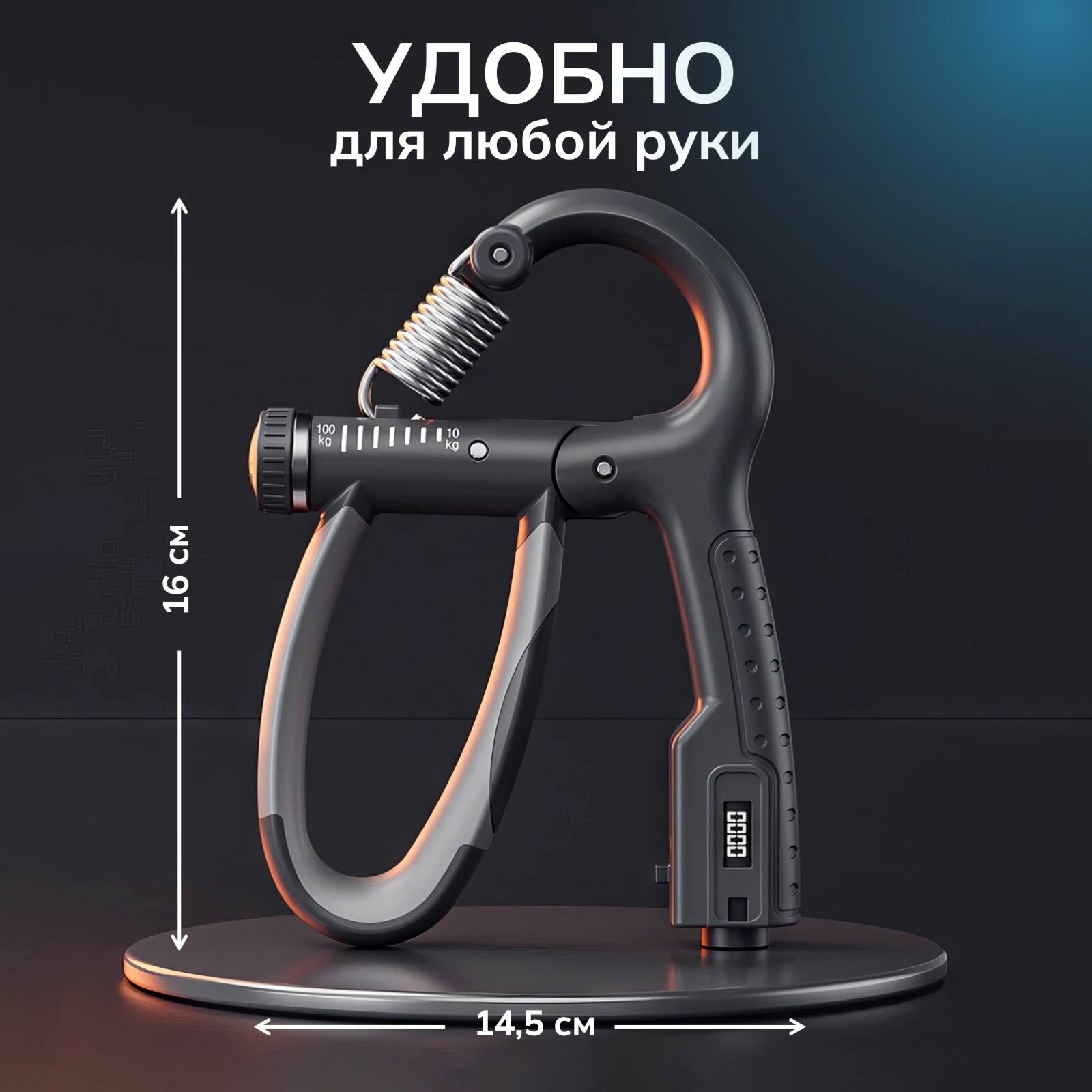 Эспандер кистевой с регулировкой нагрузки от 5 кг до 60 кг и с механическим счетчиком нажатий, для пальцев рук, предплечья, развития моторики.