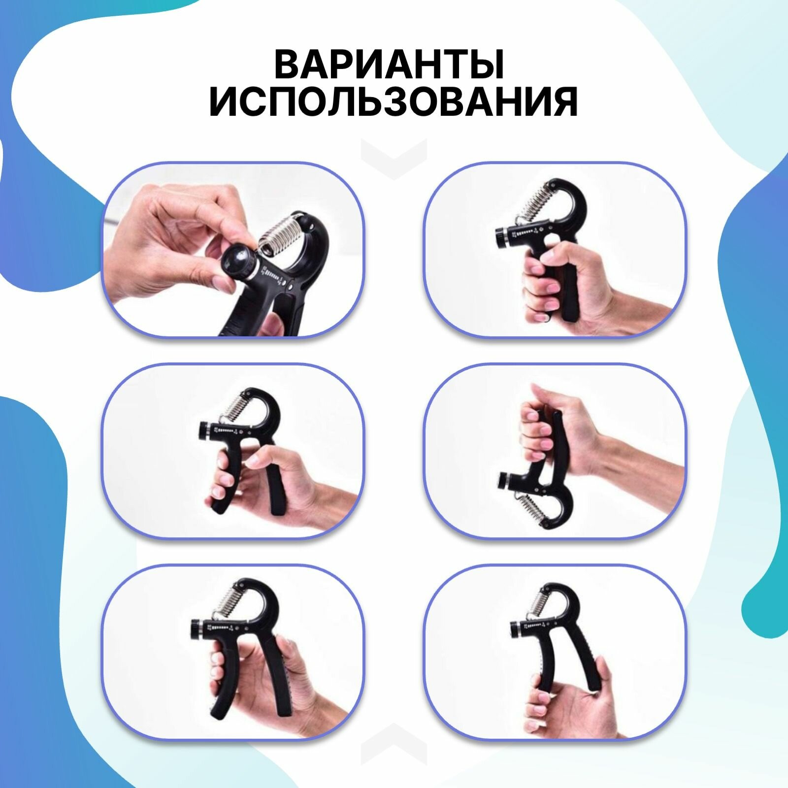 Эспандер для пальцев, Эспандер кистевой, регулируемая нагрузка 6 кг; 7,7 кг; 9,5 кг, черный