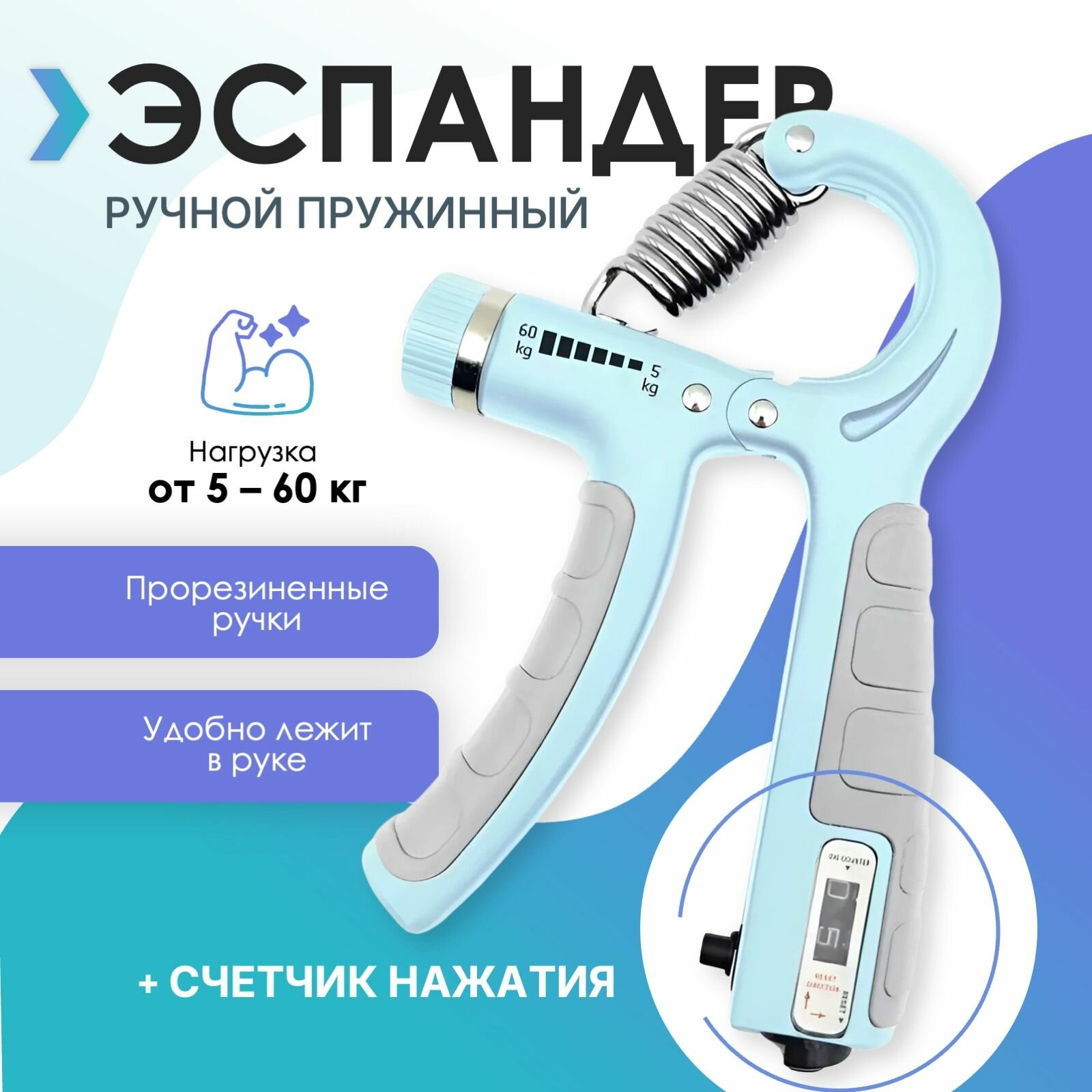 Эспандер кистевой с регулировкой нагрузки от 5 кг до 60 кг и с механическим счетчиком нажатий, для пальцев рук, предплечья, развития моторики.