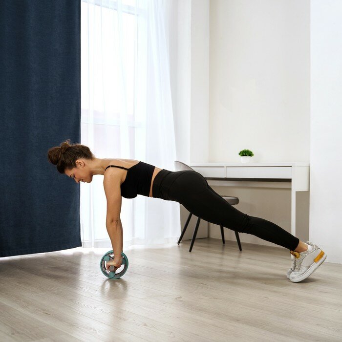 Набор для фитнеса ONLYTOP: ролик, упор для пресса, эспандер грудной, цвет бирюзовый интересное: