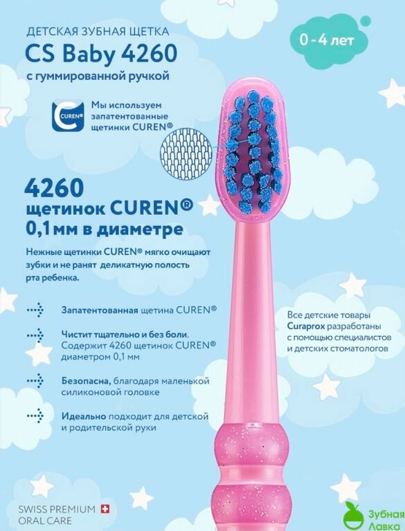 | Плюсы: | Самые лучшие щётки CURAPROX Curakid 0-4, приобретая такую зубную щётку для своего ребёнка, Вы можете быть уверены в качестве чистки зубов.