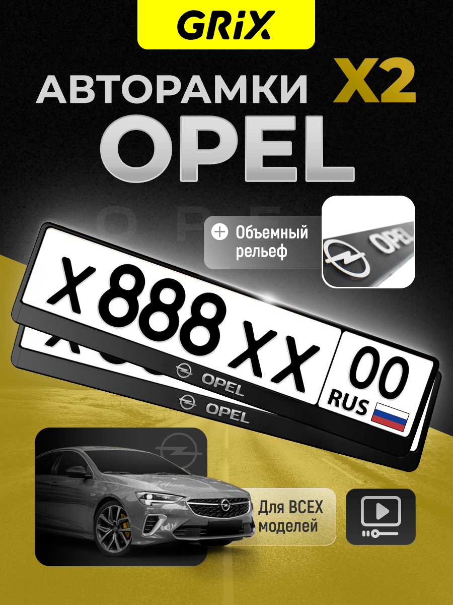 Купить Grix Рамки автомобильные для госномеров с надписью "OPEL" Набор - 2 шт.