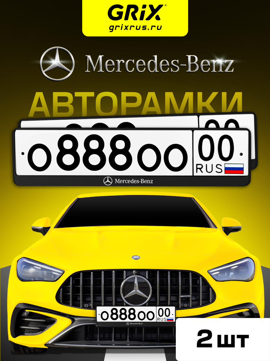 Купить Grix Рамки автомобильные для госномеров с надписью "MERCEDES" Набор - 2 шт.