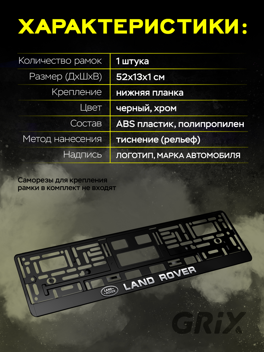 Grix Рамки автомобильные для госномеров с надписью "LAND ROVER" 1 шт. интересное: