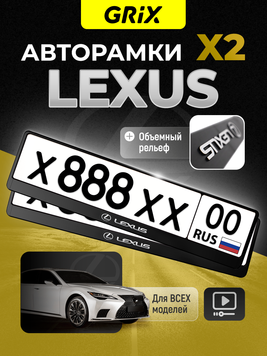 Купить Grix Рамки автомобильные для госномеров с надписью "LEXUS" Набор - 2 шт.