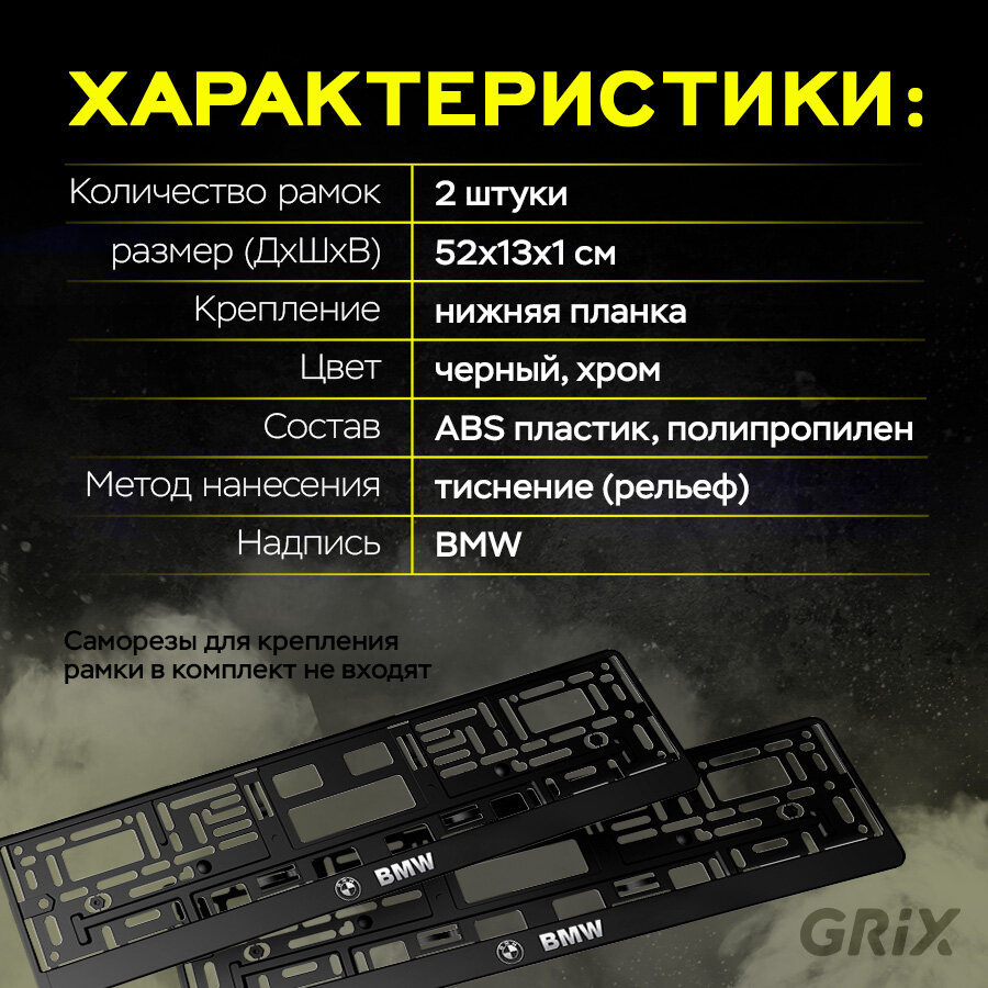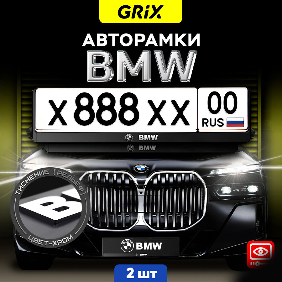 Купить Grix Рамки автомобильные для госномеров с надписью "BMW" Набор - 2 шт.