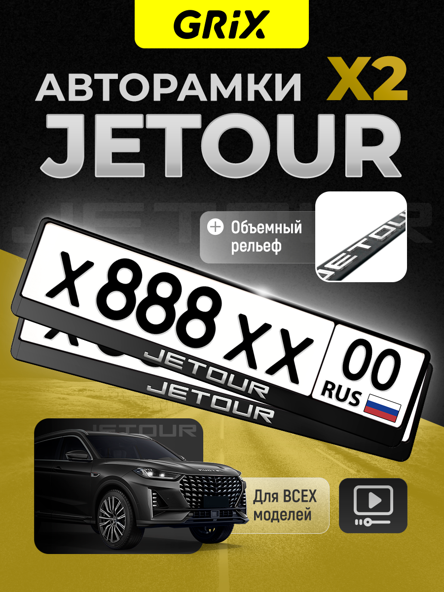 Купить Grix Рамки автомобильные для госномеров с надписью "JETOUR" Набор - 2 шт.