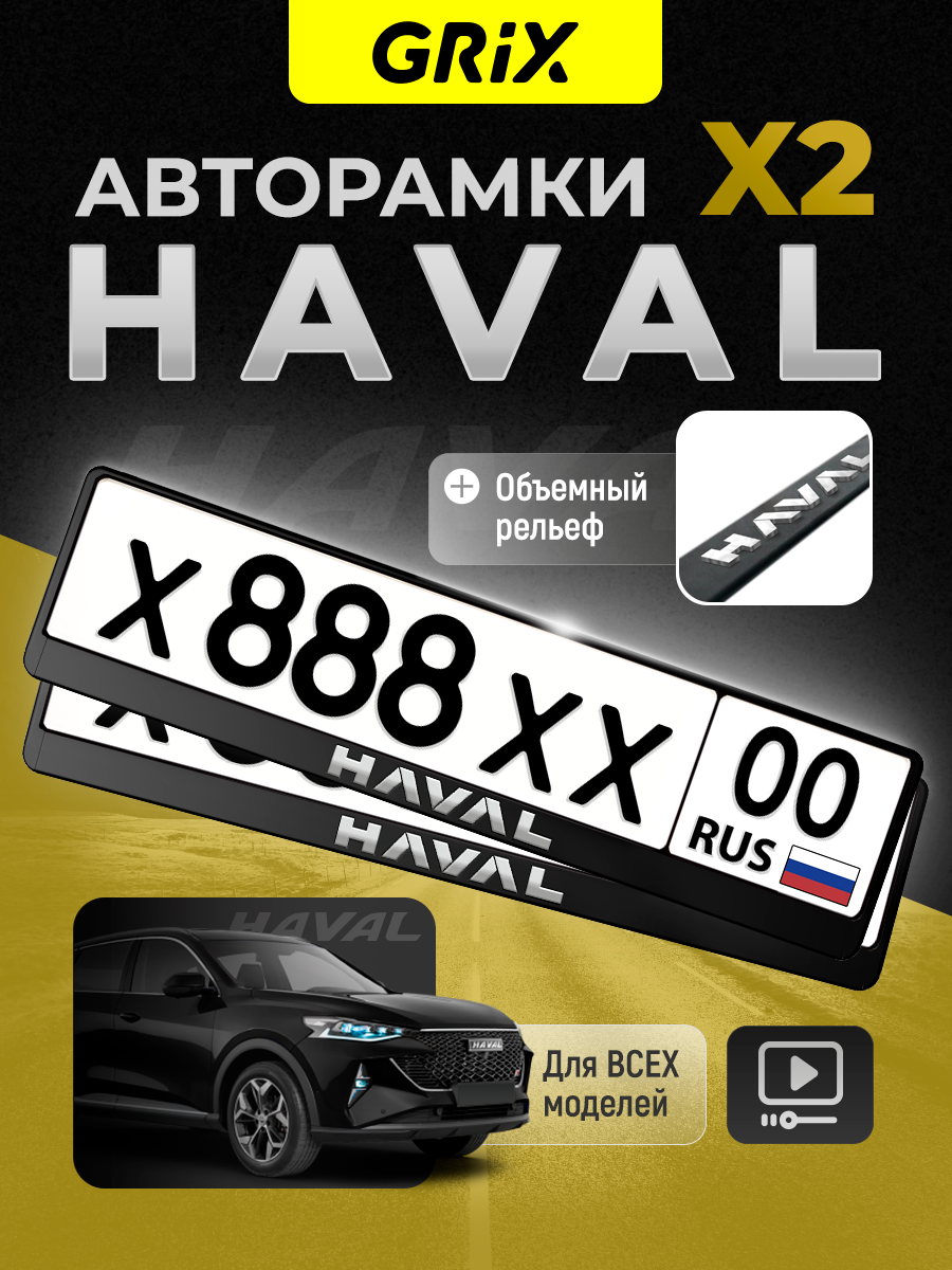 Купить Grix Рамки автомобильные для госномеров с надписью "HAVAL" Набор - 2 шт.