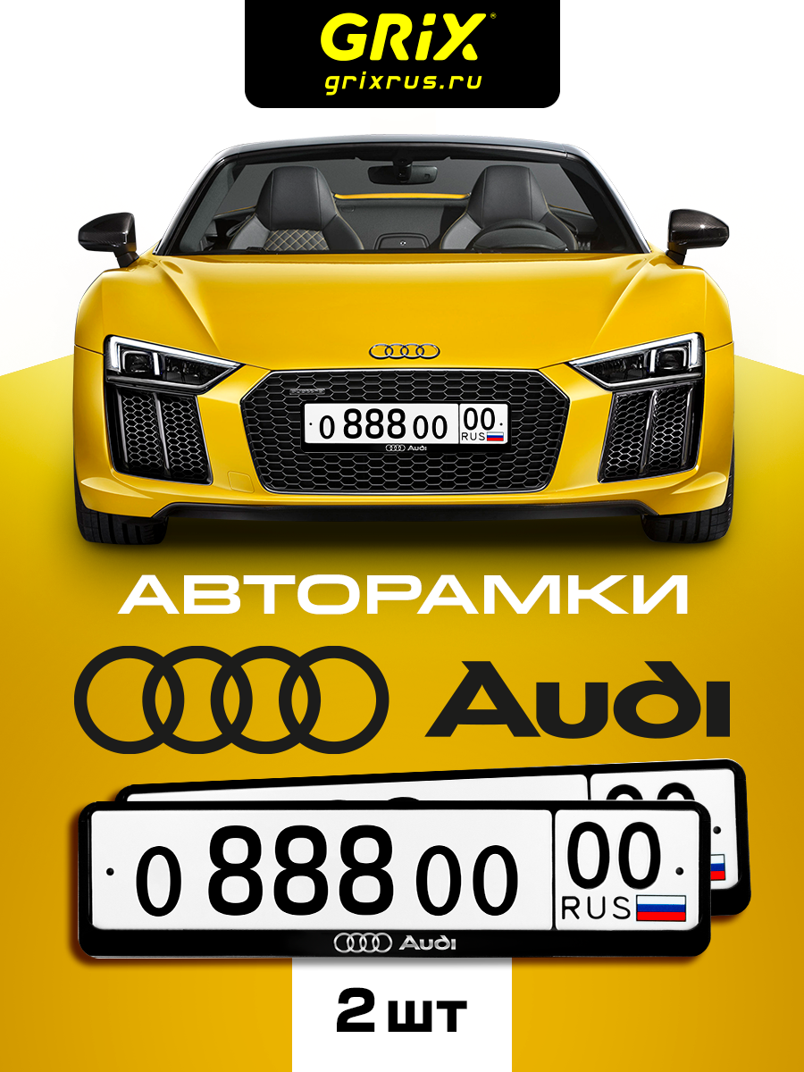 Grix Рамки автомобильные для госномеров с надписью "AUDI" Набор - 2 шт.
