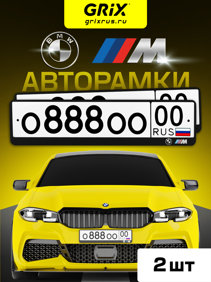 Купить Grix Рамки автомобильные для госномеров с надписью "BMW ///M" Набор - 2 шт.
