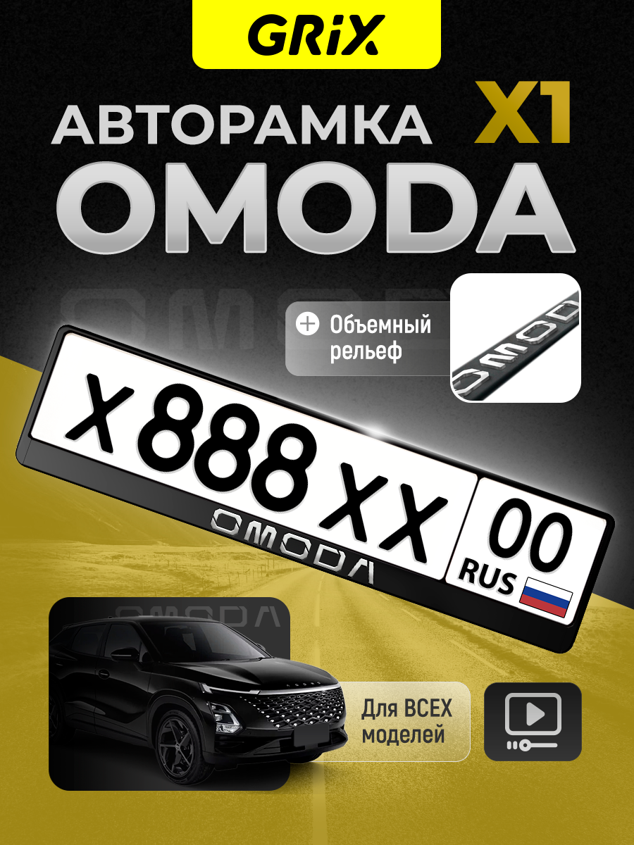 Grix Рамка автомобильная с надписью "OMODA" / Адаптеры номера авто для китайских автомобилей