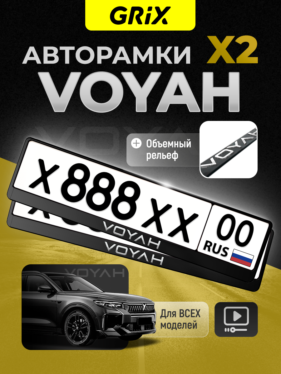 Купить Grix Рамки автомобильные для госномеров с надписью "VOYAH" Набор - 2 шт.