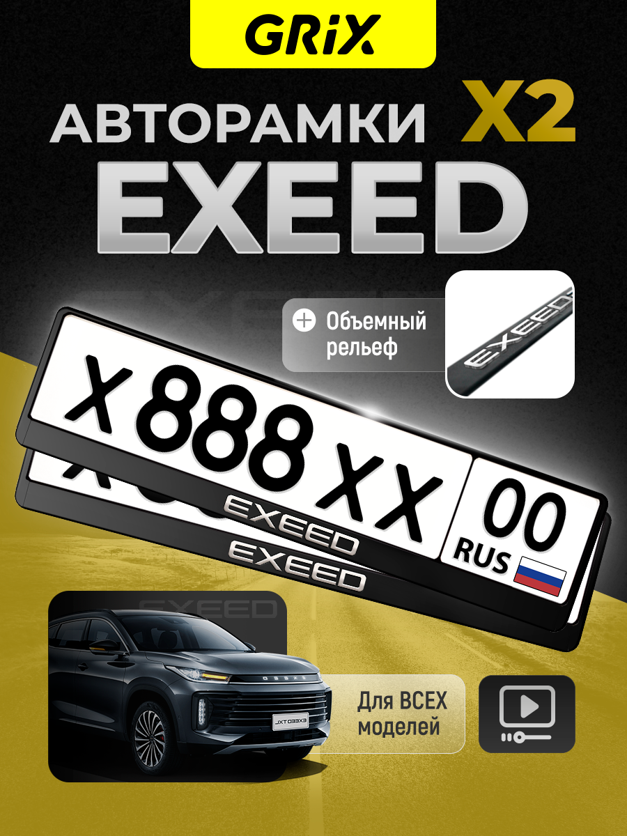 Купить Grix Рамки автомобильные для госномеров с надписью "EXEED" Набор - 2 шт.