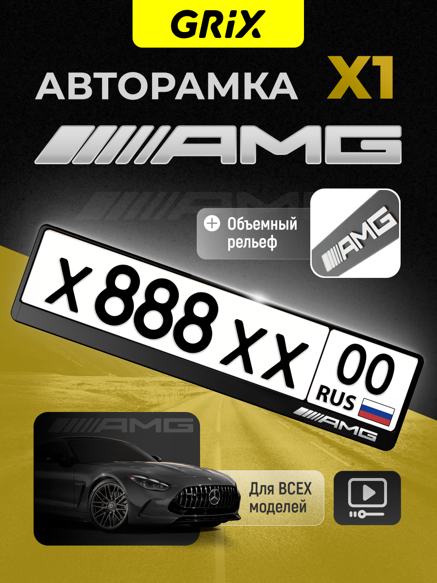 Купить Grix Рамки автомобильные для госномеров с надписью "AMG" 1 шт.