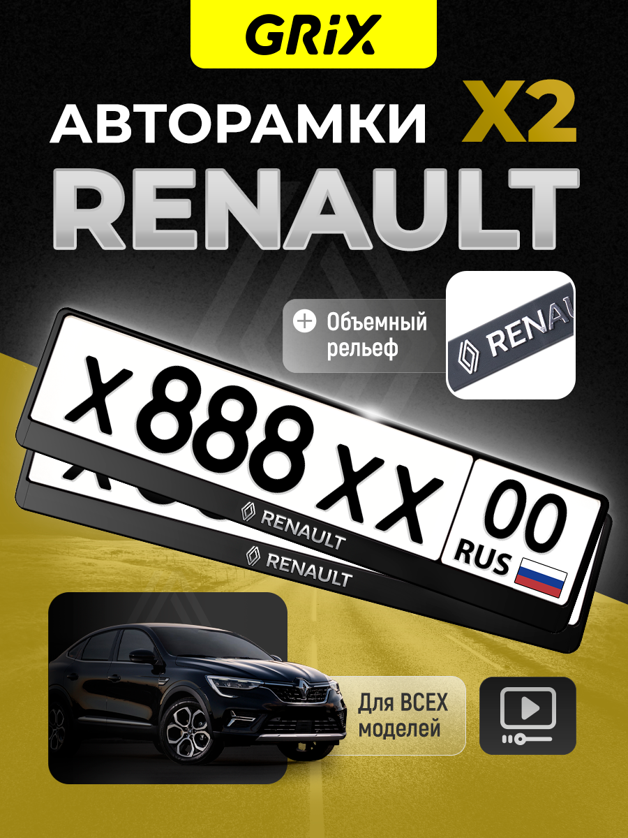 Купить Grix Рамки автомобильные для госномеров с надписью "RENAULT" Набор - 2 шт.