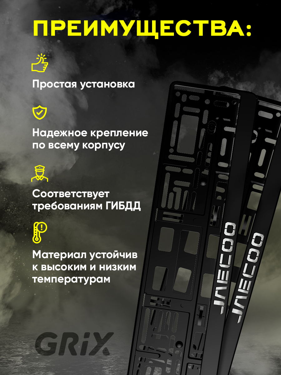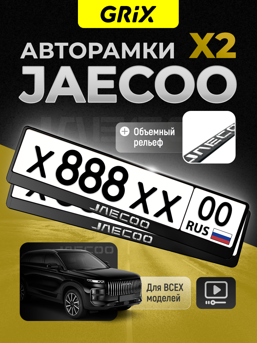 Купить Grix Рамки автомобильные для госномеров с надписью "JAECOO" Набор - 2 шт.
