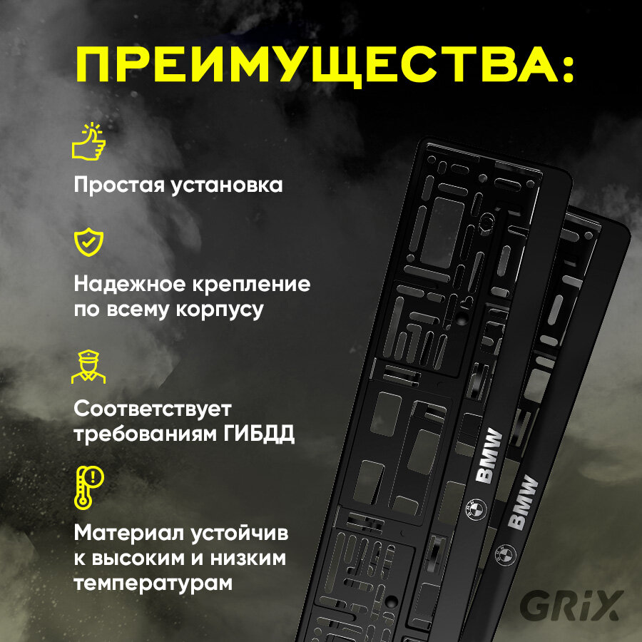 Grix Рамки автомобильные для госномеров с надписью "BMW" Набор - 2 шт.