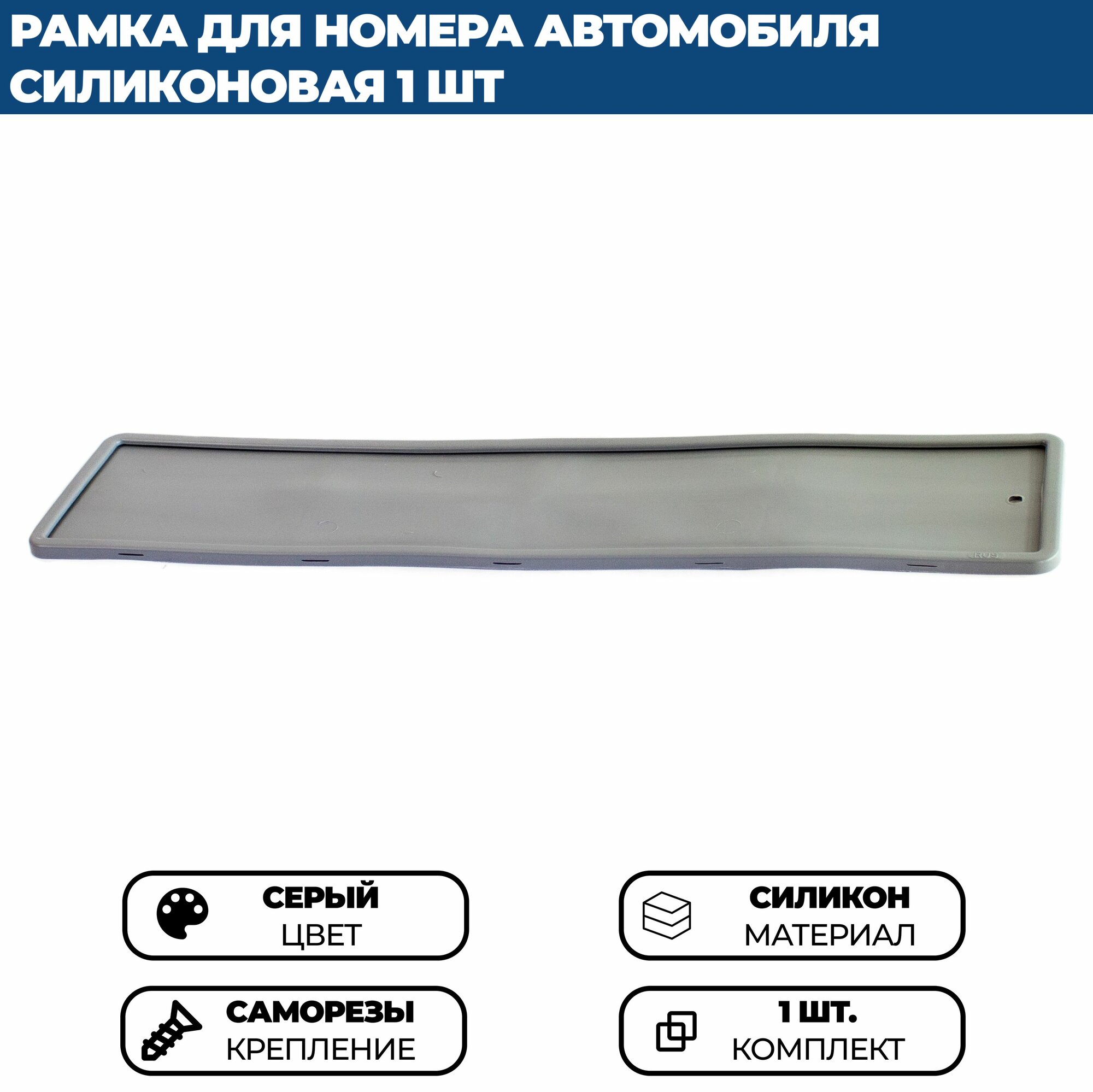 Силиконовая рамка для номера автомобиля, цвет серый, одна штука