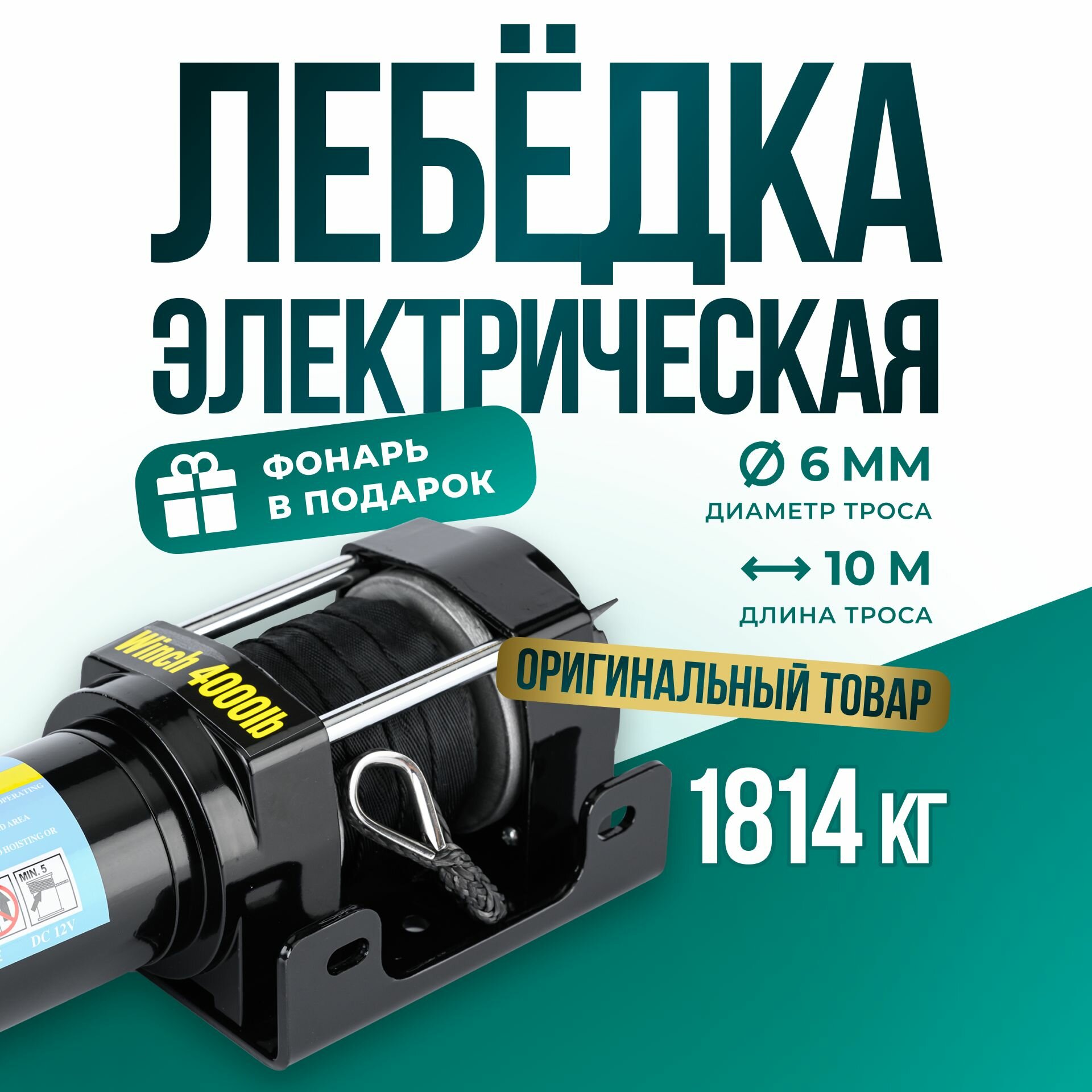 Лебедка автомобильная электрическая 4000 lbs 12V Electric Winch синтетический трос/ переносная лебедка 12В на Ниву, квадроцикл грузоподъемность 1815 кг интересное:
