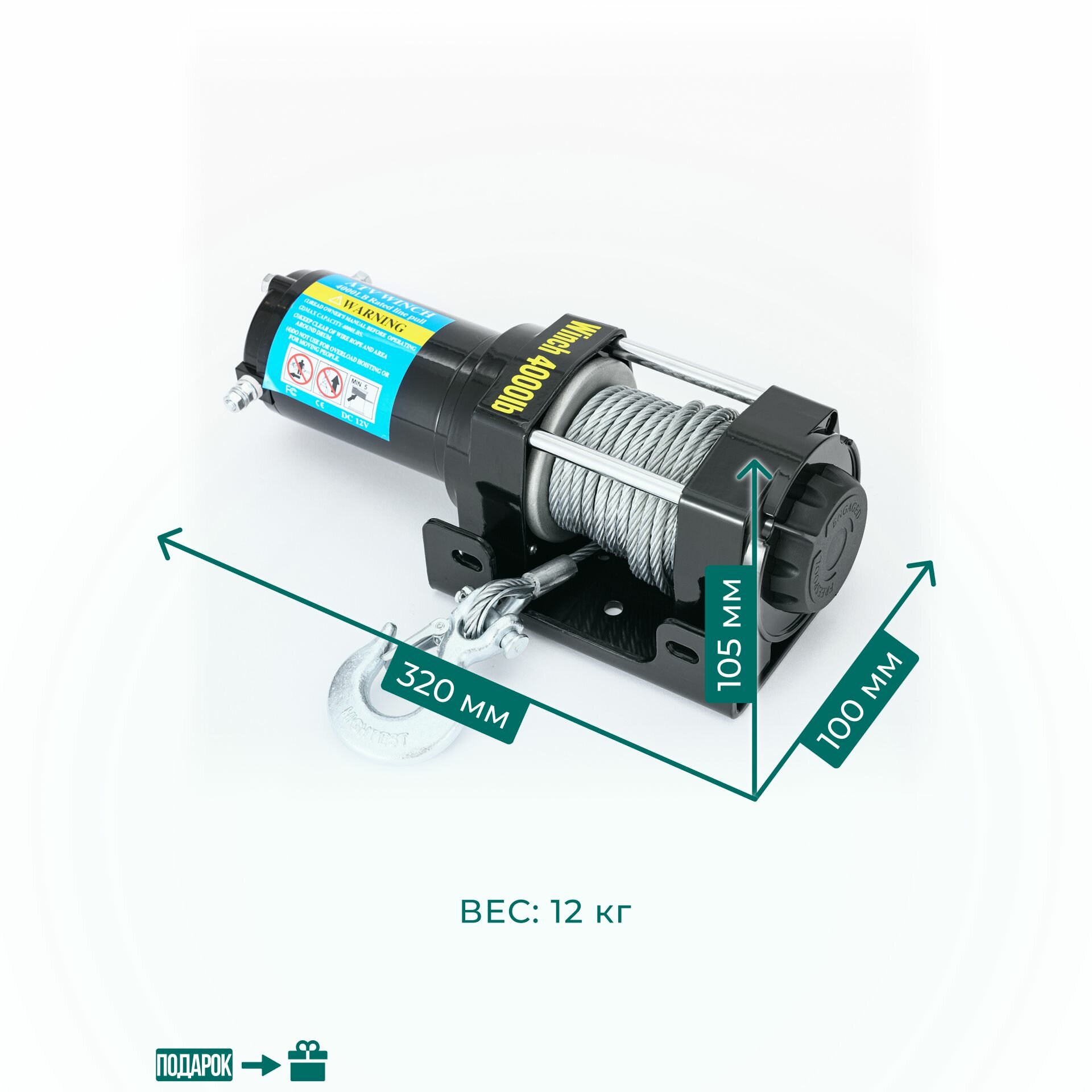 Купить Лебедка автомобильная электрическая 4000 lbs 12V Electric Winch трос стальной/ автомобильная переносная лебедка 12В на Ниву, квадроцикл грузоподъемность 1815 кг