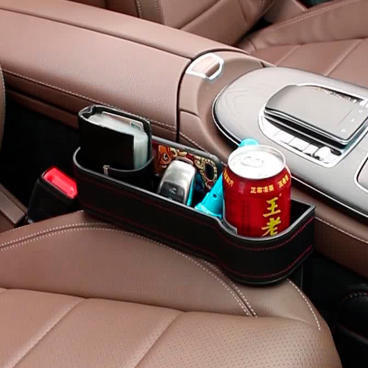 Автомобильный органайзер водительский, подстаканник для авто, хранение мелочей коричневый