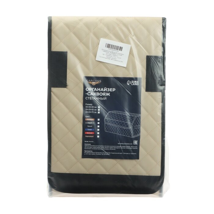 Органайзер кофр в автомобиль Cartage саквояж, экокожа стеганая, 30 см, бежевый интересное: