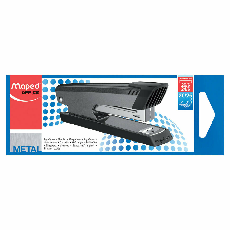 Степлер №24/6, 26/6 металлический MAPED (Франция) "Start", до 25 листов, темно-серый, 392710 (цена за 1 ед.товара)