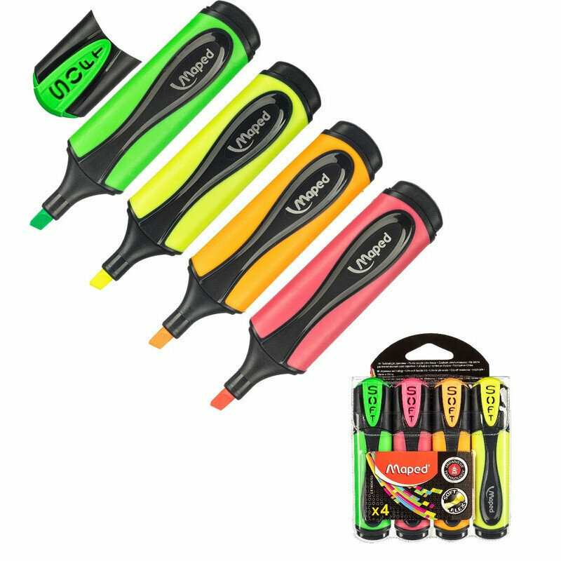 Набор текстовыделителей Maped Ultra Soft мягкий наконечник толщина линии 1-5 мм (4 цвета зеленый/розовый/оранжевый/желтый), 756900 интересное: