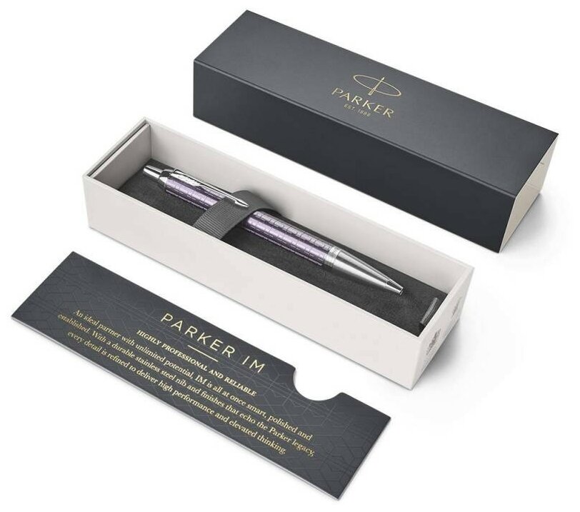 Ручка шариковая PARKER "IM Premium Dark Violet CT", корпус фиолетовый с гравировкой, хромированные детали, синяя, 1931638