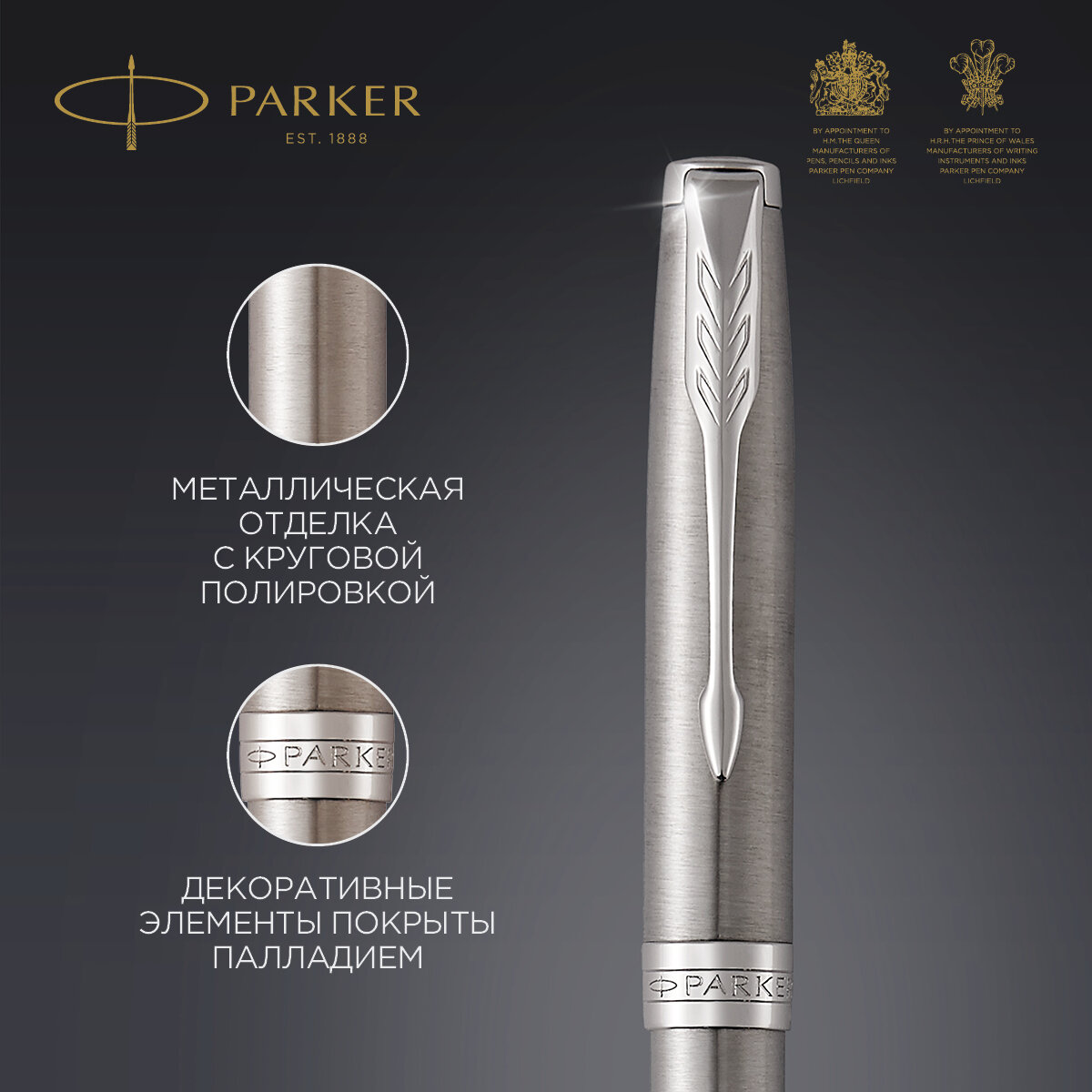 Ручка шариковая PARKER «Sonnet Core Stainless Steel CT», корпус серебристый, палладиевые детали, черная