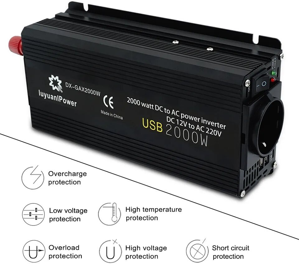 СохранитьАвтомобильный преобразователь напряжения 2000 Вт 12В-220В инвертор Lvyuan автомобильный 2000w 12v-220v интересное: