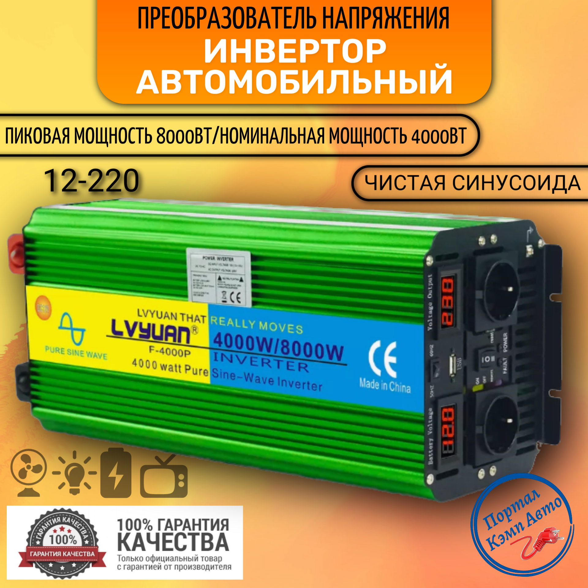 Автомобильный преобразователь напряжения инвертор Lvyuan 4000w 12v-220v Power inverter. Чистый синус. Чистая, немодифицированная синусоида